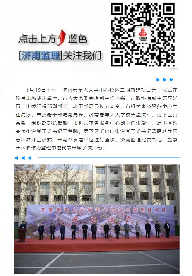 濟南監(jiān)理參加濟南老年人大學中心校區(qū)二期新建項目開工儀式